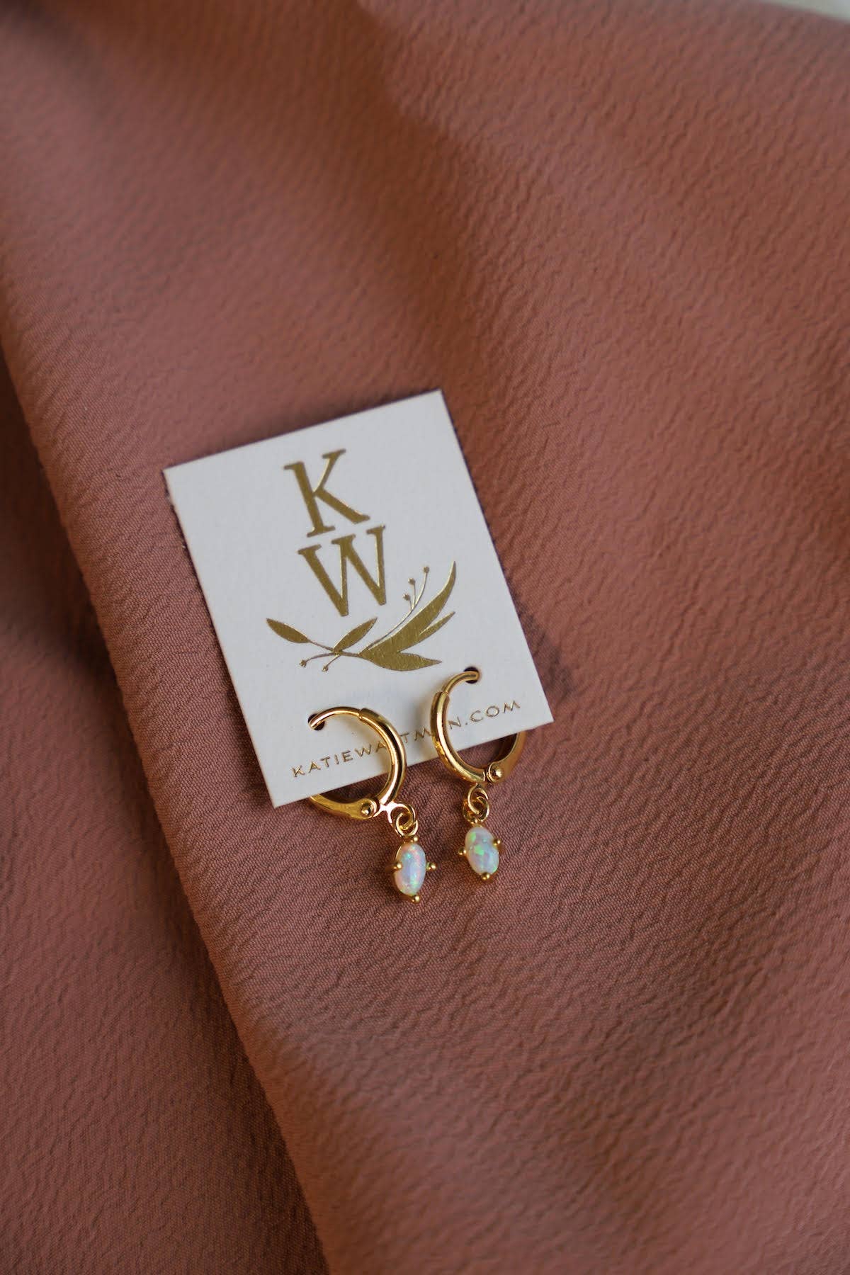 Our Mini Oval Opalite Huggies are the perfect touch to add to your ear stack. The mini oval opalite adds a unique shimmer that compliments anyone who wears it. These earrings make the perfect gift and we love pairing them with our Opal Teardrop Necklace! Details: - Huggie style - Gold plated brass - Synthetic opal
