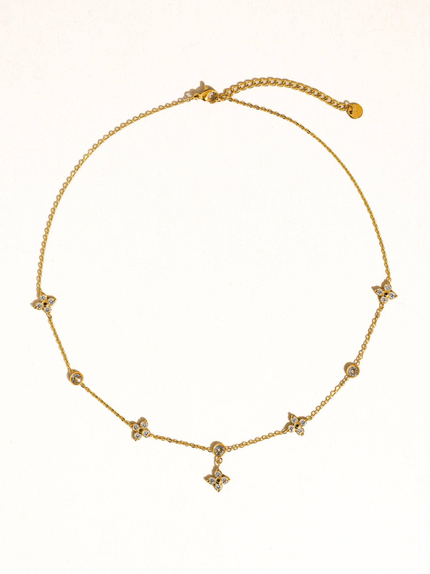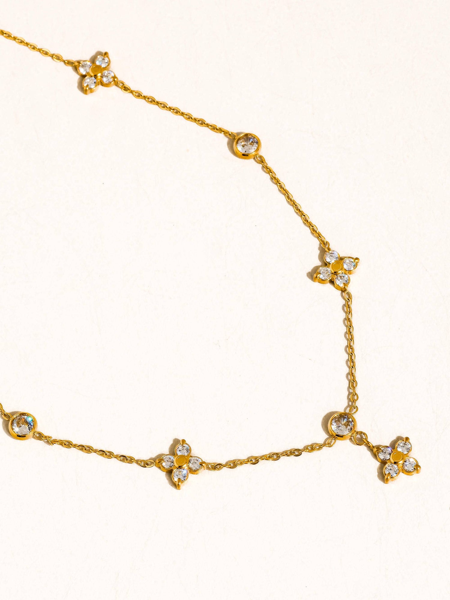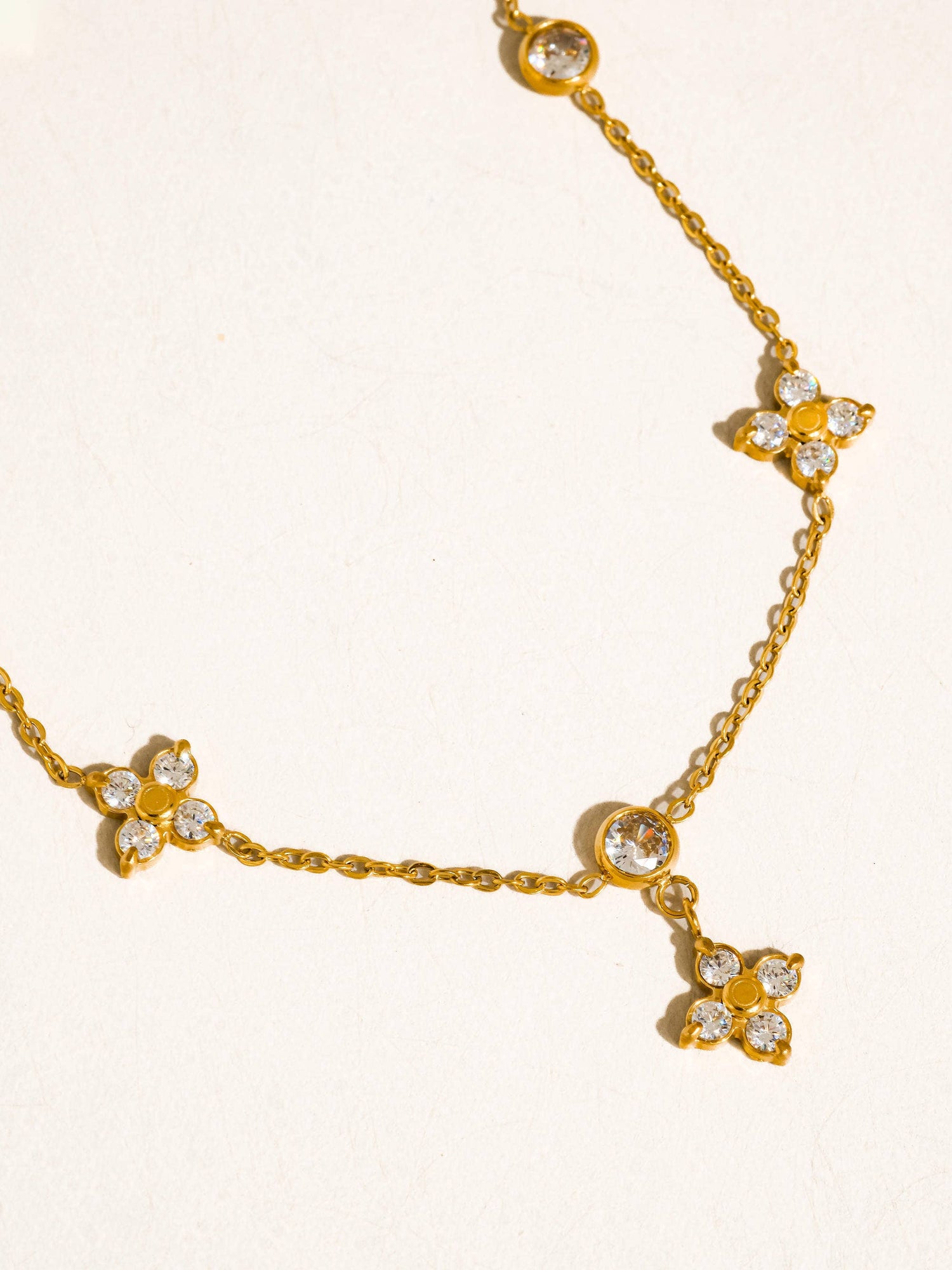 Aveline 18K Gold Non-Tarnish CZ Floral Chain Necklace