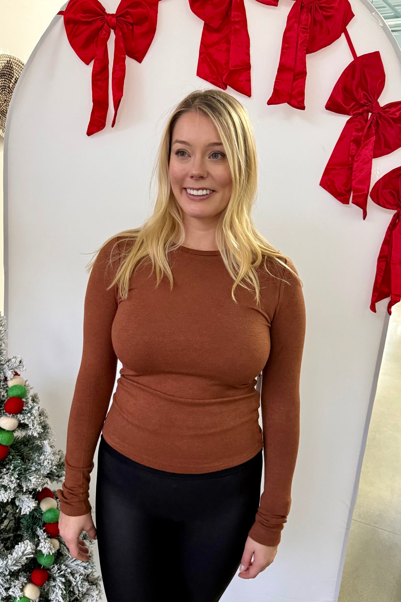 Brushed Crewneck Long Sleeve Tee Chestnut