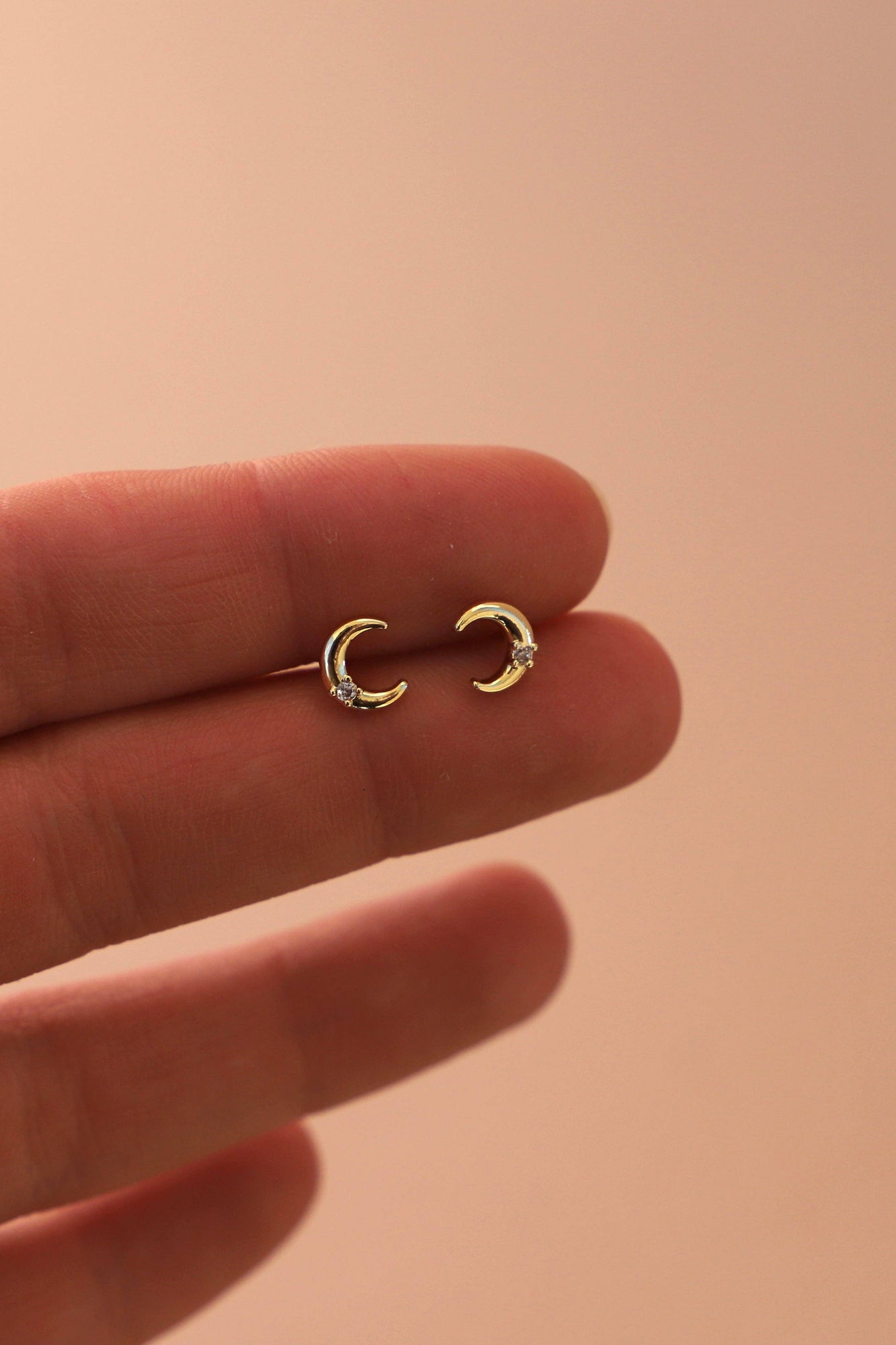 The Crescent Moon CZ Studs are a simple yet dazzling piece. The gold crescent moon features a mini cubic zirconia stone detail making it beautifully unique and the perfect accent piece or simple statement.