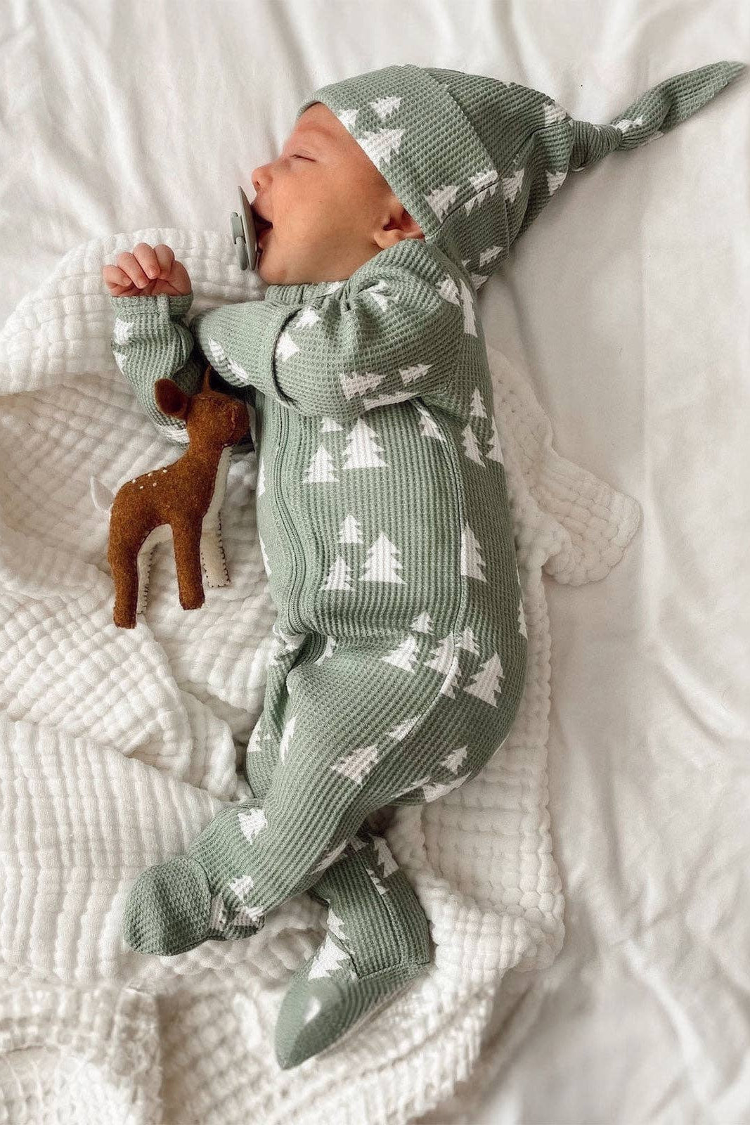 Organic Waffle 2-Way Zip Footie Alpine Trees