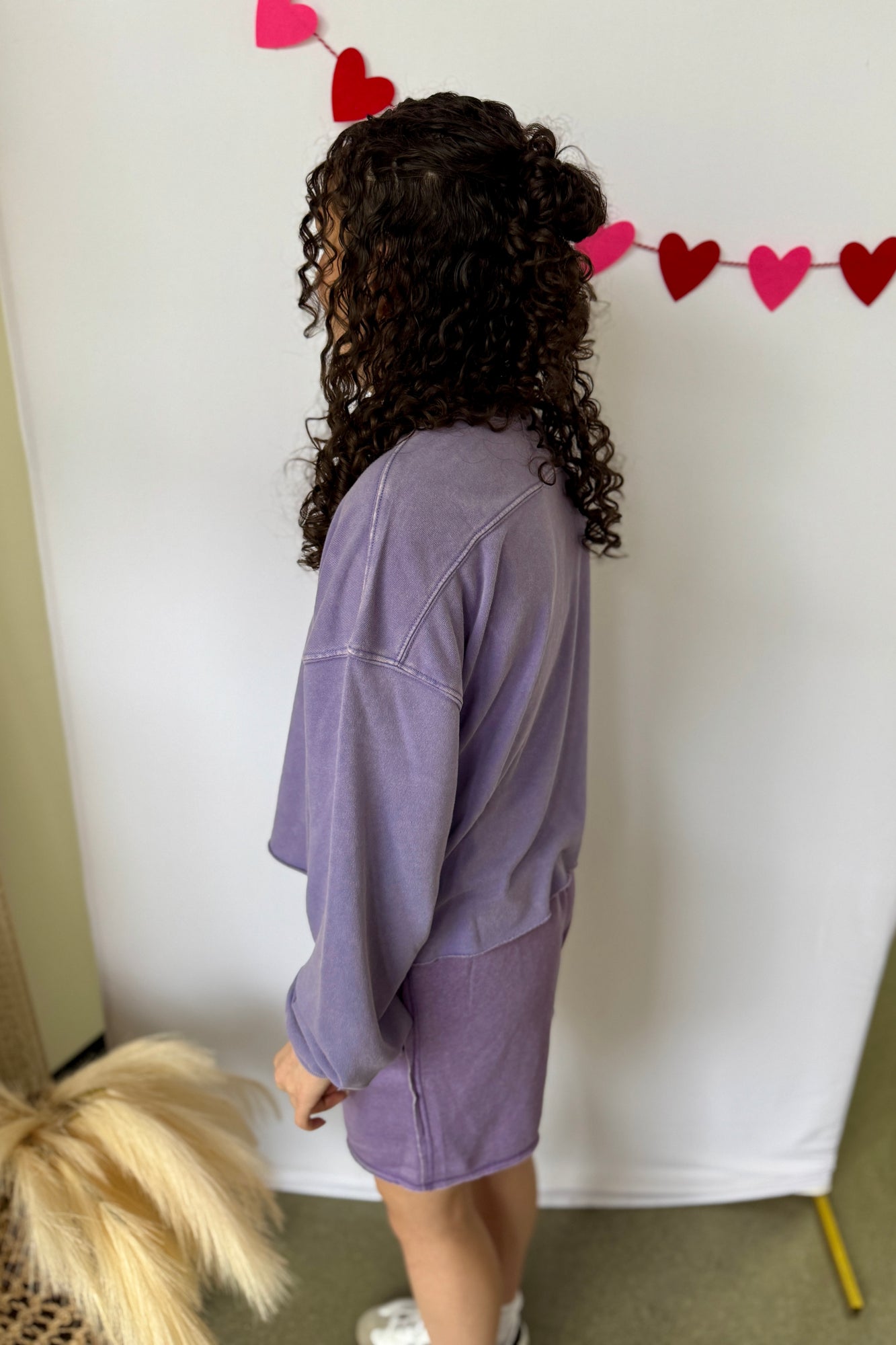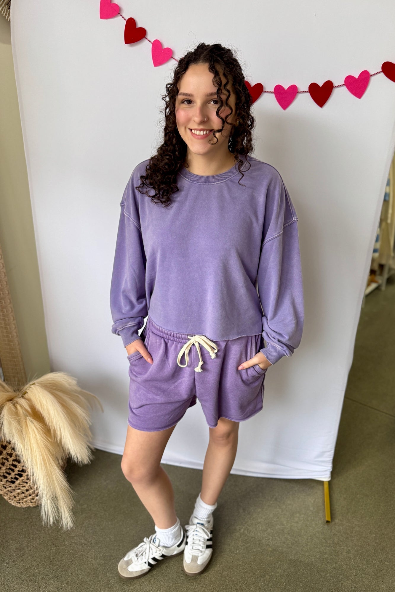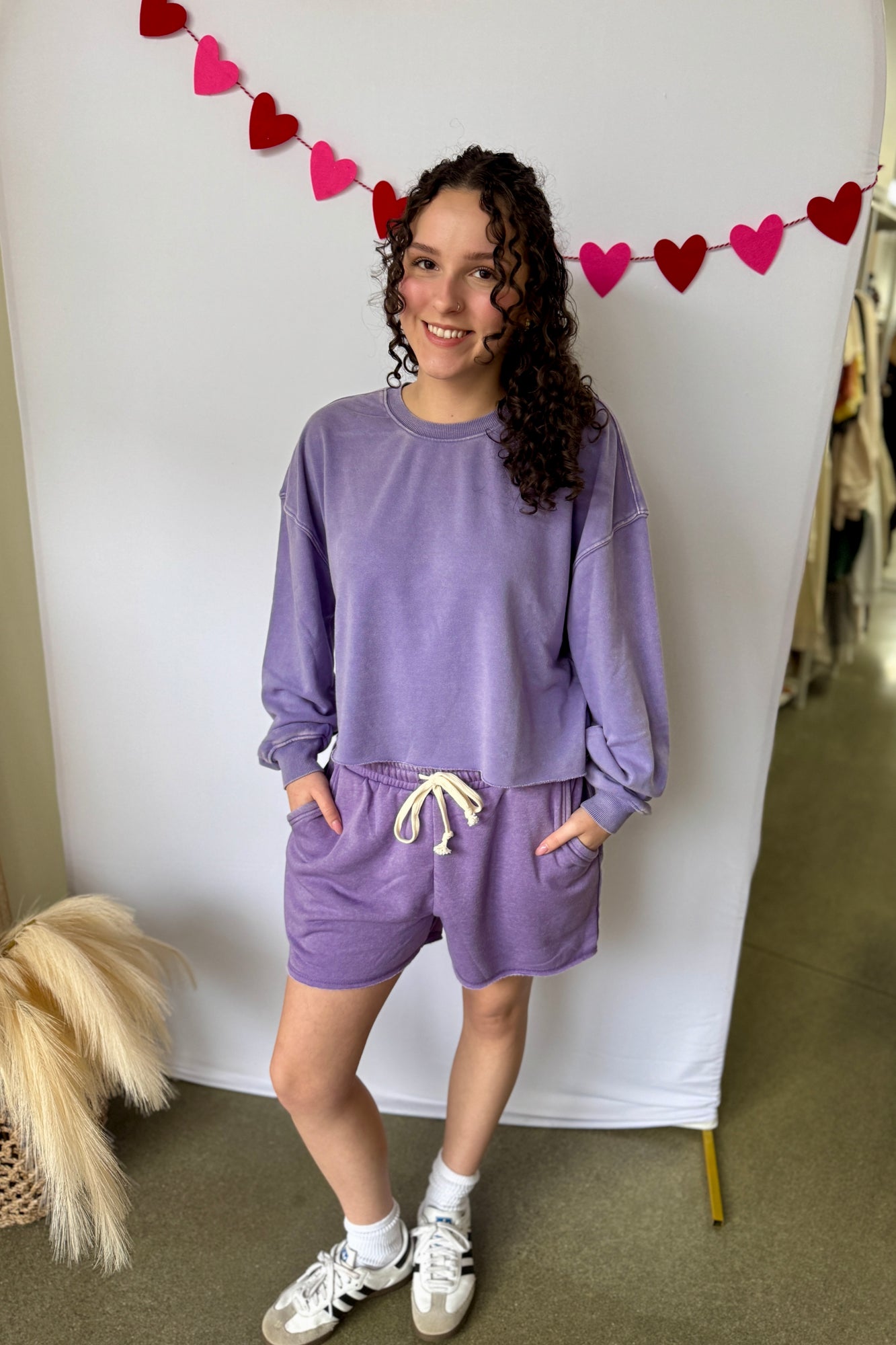 Matching set with Cropped Mineral Washed Sweatshirt Lavender