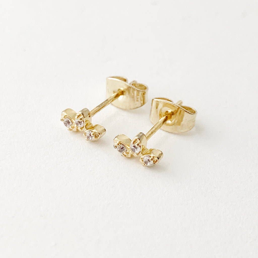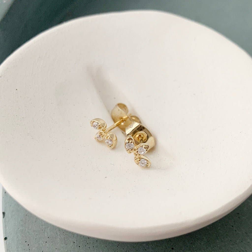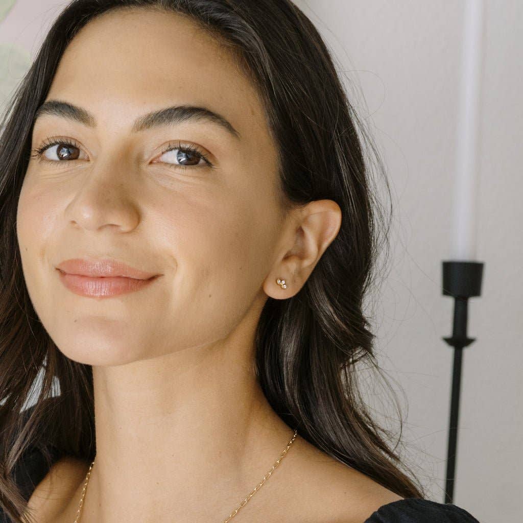 These mini lotus studs feature a tiny crystal set on each petal, creating a soft, light-catching shimmer. Small, lightweight, and endlessly wearable, they’re perfect for everyday styling. Wear them on their own or layered into your ear stack for a little extra glow. Measures 4mm x 7mm.