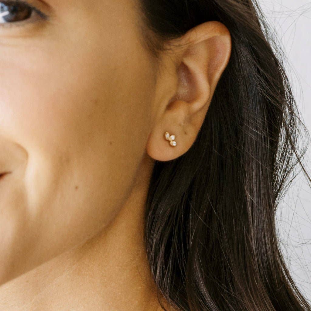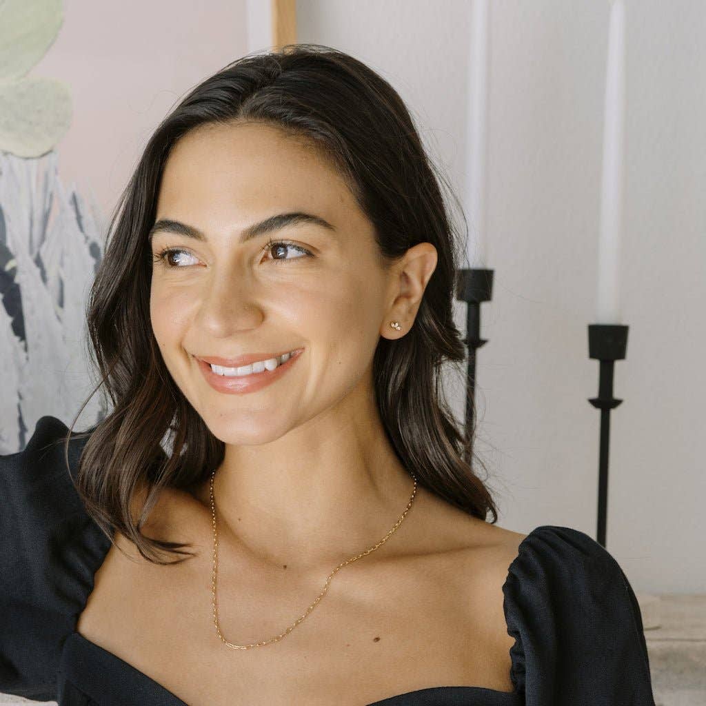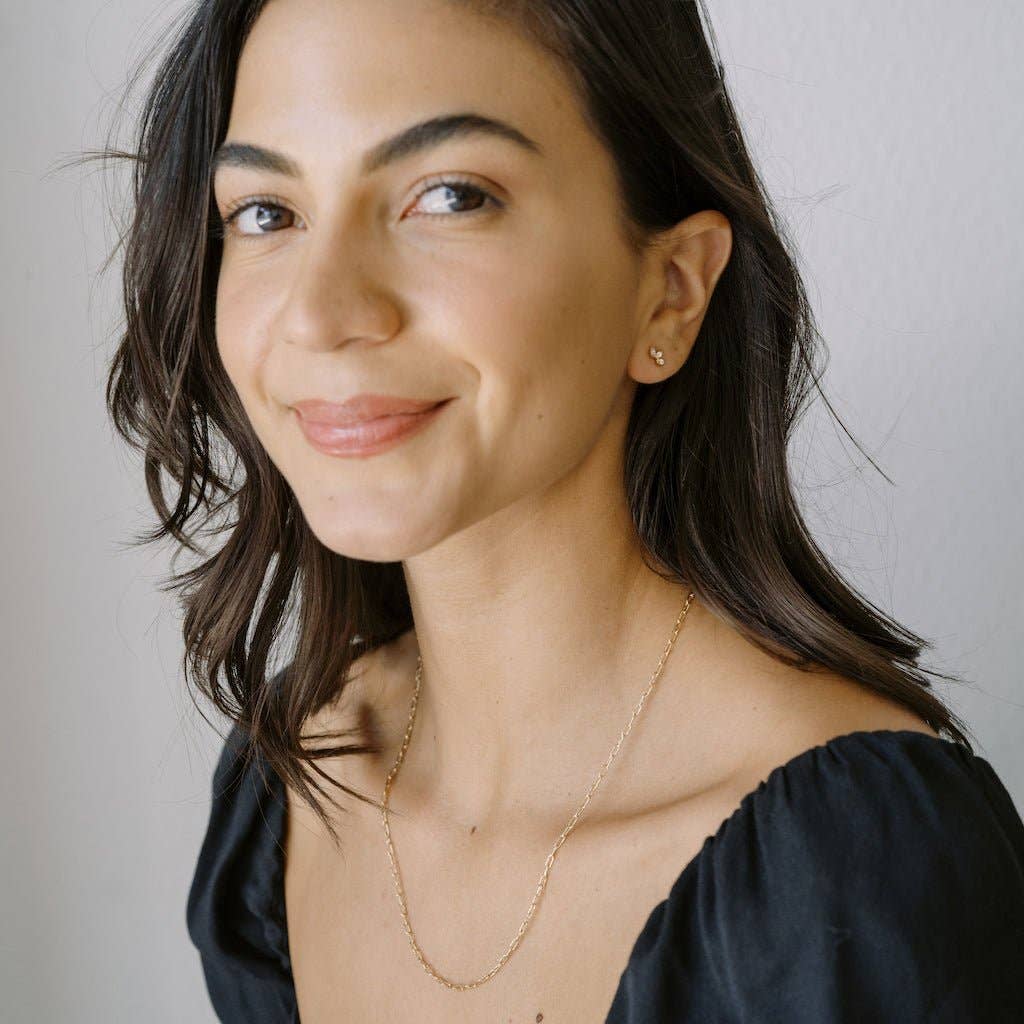 These mini lotus studs feature a tiny crystal set on each petal, creating a soft, light-catching shimmer. Small, lightweight, and endlessly wearable, they’re perfect for everyday styling. Wear them on their own or layered into your ear stack for a little extra glow. Measures 4mm x 7mm.