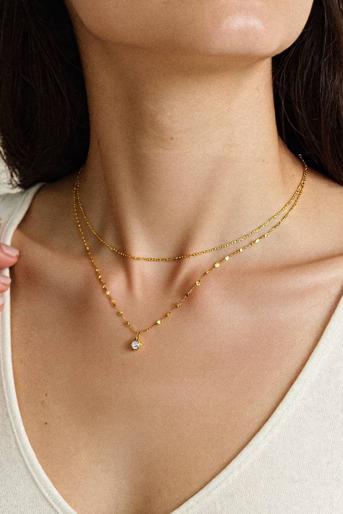 18K Gold Non-Tarnish CZ Stone Stacked Necklace