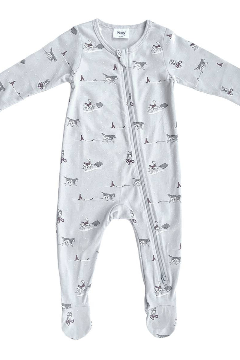 • PNW Baby Footed Zip Romper- Huskies