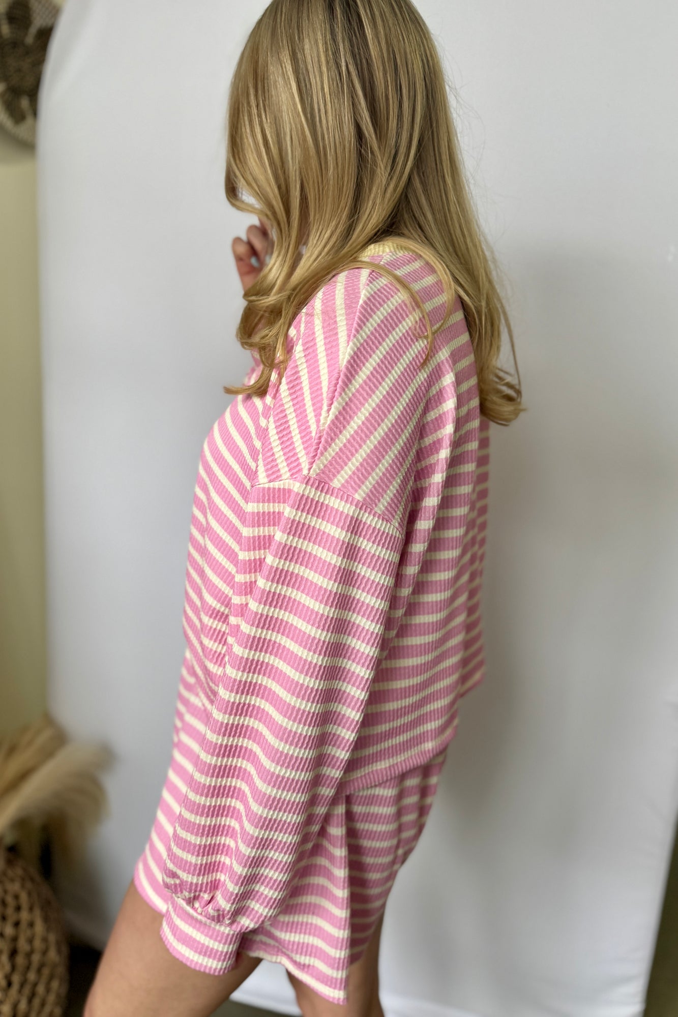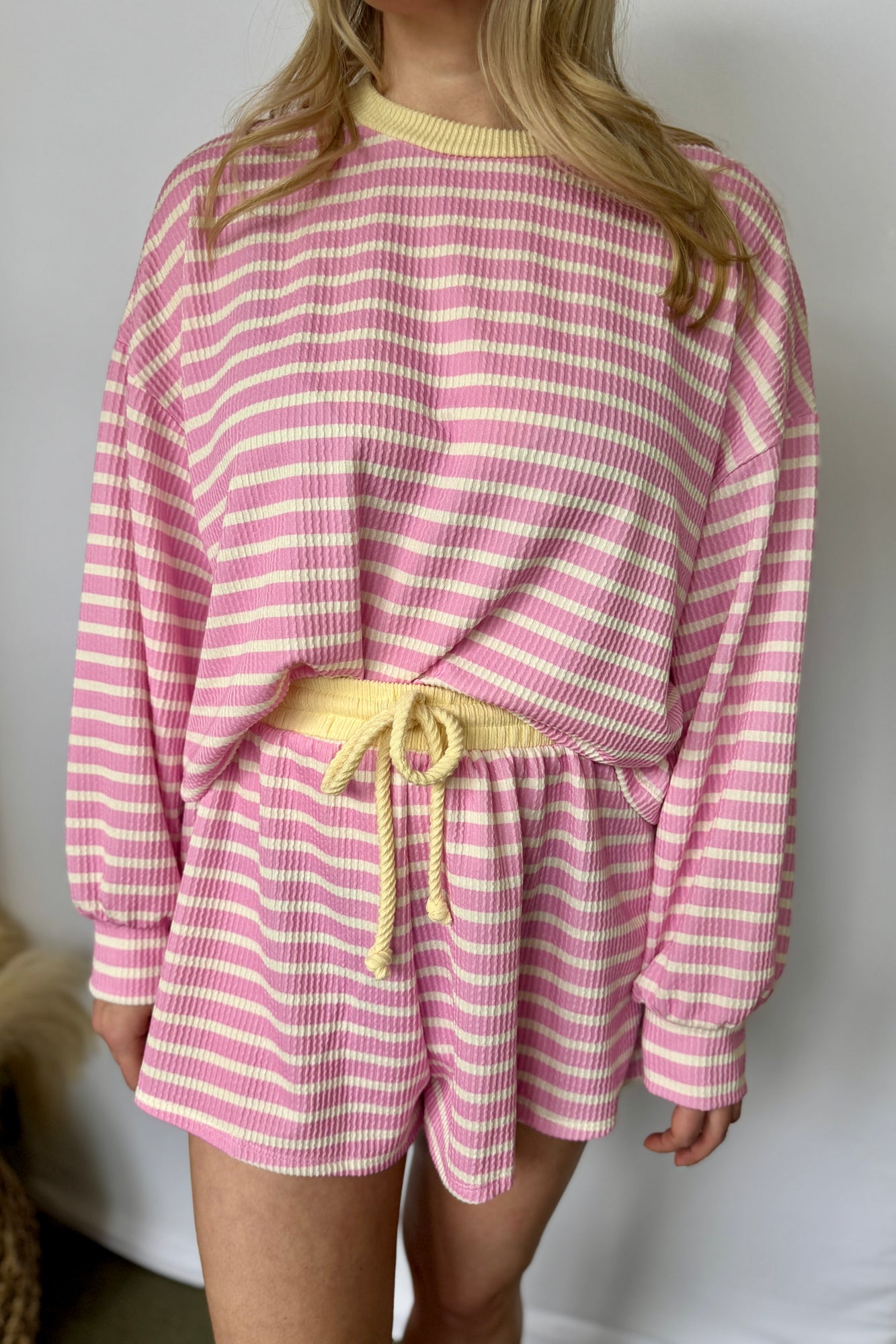 Striped Textured Knit Shorts