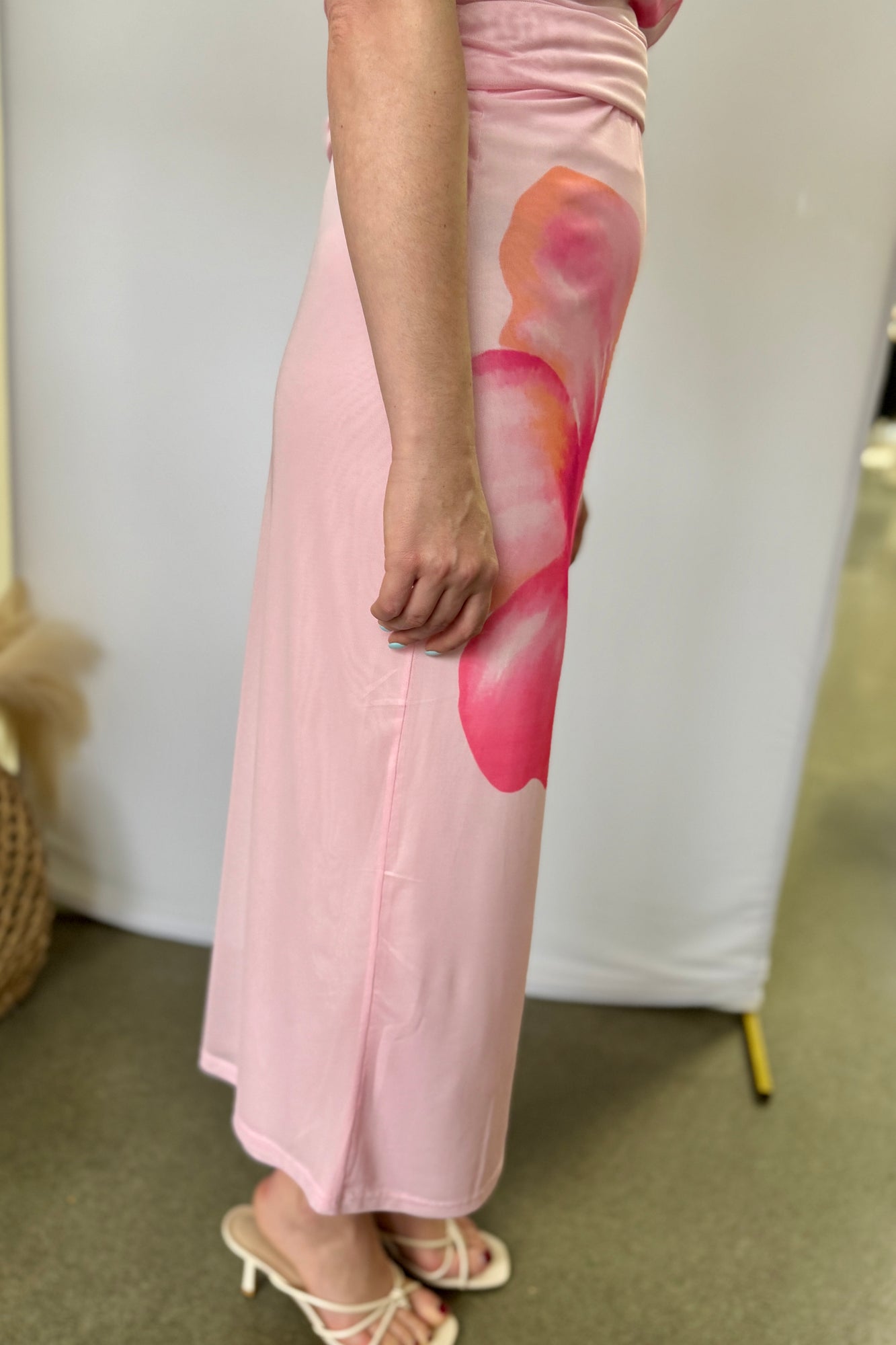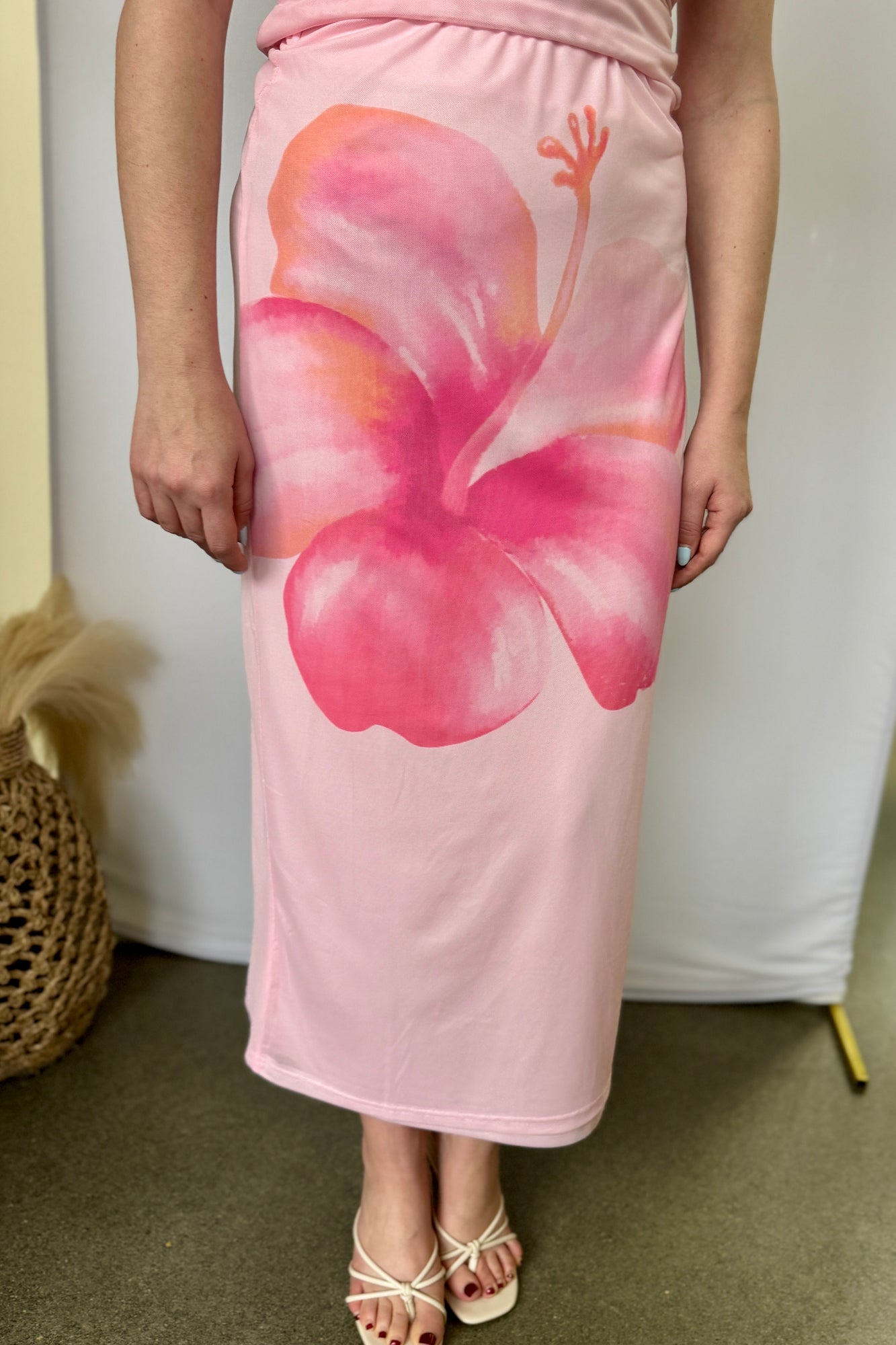 Graphic Flower Print Mesh Midi Skirt