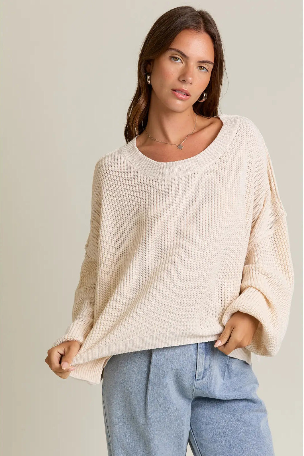 This pullover mock neck sweater in ivory offers a relaxed fit for ultimate comfort. The mock neck adds a touch of sophistication to your wardrobe. Perfect for both casual and formal occasions, this sweater will keep you comfortable and stylish.