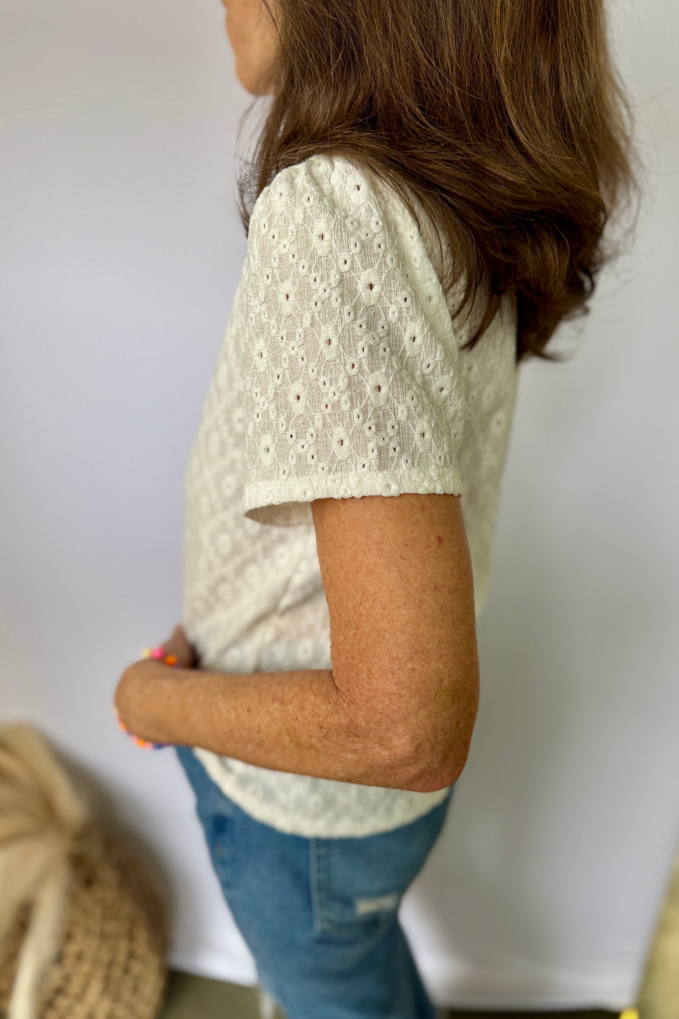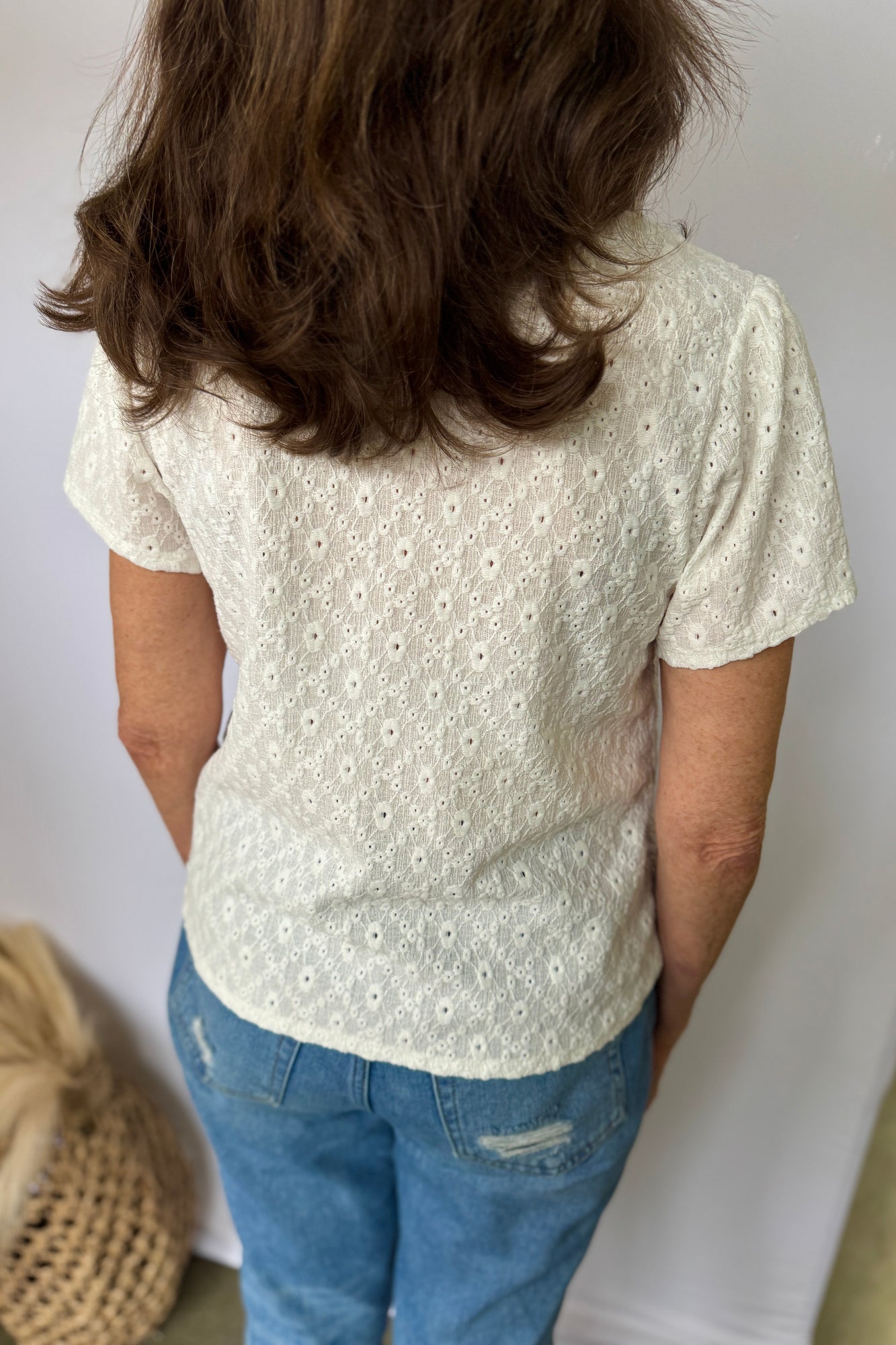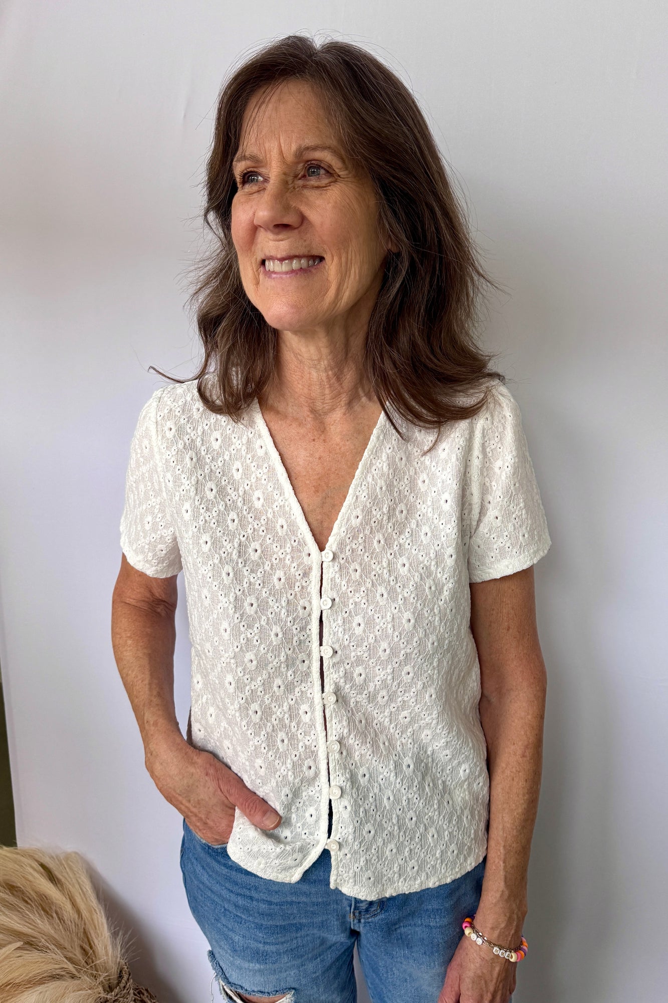 V-Neck Short Sleeve Button Down Lace Top