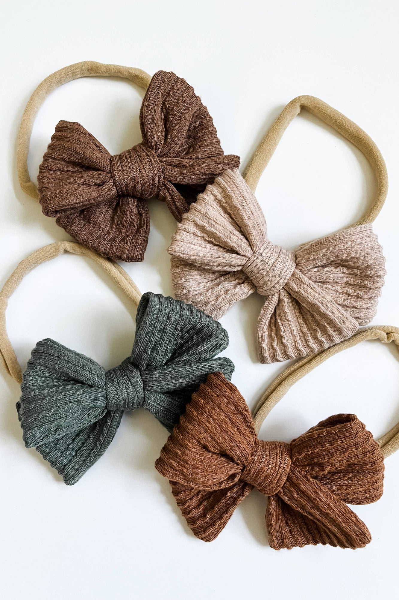 The simplicity of our Willow bows make them perfect for everyday wear. They are placed on a nylon headband and best fit newborn to 24 months.
